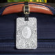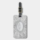 Une étiquette de valise à look ornemental argent.