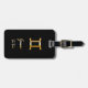 Élégante étiquette à bagages avec gemini or signe sur arrière - plan noir.