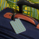 Cette étiquette de bagage présente un motif carrelé doux à fleurs en bleu et or de l'artiste Jayne Wilson.