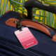 Étiquette À Bagage Bandes rétro rose rose avec nom et texte blanc
