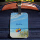 Le tag bagage de Beach Getaway présente une version peinte à la main d'une photo que j'ai prise sur la belle île Anna Maria, en Floride. La belle couleur de l'eau du golfe et le sable blanc font de cet endroit un endroit parfait pour ce couple qui veut installer un parasol caché en partie par une dune de sable au premier plan. Katie a aimé cette couverture pour son étiquette de bagage, mais vous pouvez la personnaliser à votre façon.