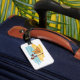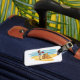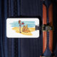 Un enfant qui s'amuse à construire un château de sable de plage. Cette conception semble vraiment efficace sur ces étiquettes de bagage