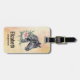 Marque de bagage personnalisée avec une belle illustration d'une tête de cheval noire avec un embellissement floral fantaisie par son cou. Peinture animale élégante et classe. L'arrière - plan a un design abstrait soigné dans une couleur jaune clair avec des faux éclats d'or.