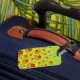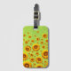 Étiquette À Bagage Belles fleurs jaunes sur vert abstrait