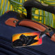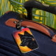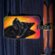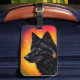 Cette étiquette de bagage a un berger allemand représenté dessus.