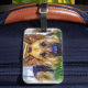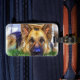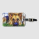Cette étiquette de bagage a un berger allemand représenté dessus.