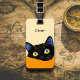 Playful illustration of a black cat with bright yellow eyes peeking over an orange blanket. The curious expression and vivid colors create a fun and eye-catching design, perfect for a luggage tag that adds personality and charm to any traveler’s bag.