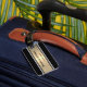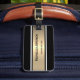 Black gold elegant modern striped personalized design with sophisticated tan nameplate banner and crisp white accent lines. Bold contemporary geometric pattern creates striking professional aesthetic perfect for business travelers and style-conscious professionals. Fully customizable with your name and personal text. Sleek modern design ideal for corporate travel, networking events, conferences. High-contrast color combination ensures instant baggage identification at airports. Premium quality durable materials. Makes impressive gift for executives, entrepreneurs, colleagues.