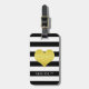 Étiquette À Bagage Black White Stripes Faux Gold Heart