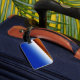 Étiquette À Bagage Bleu brun blanc abstrait texture art arrière - pla