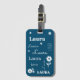 Étiquette À Bagage Bleu turquoise aux fleurs blanches, Customisé