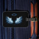 Étiquette À Bagage Blue Glowing Angel Wings on black background