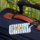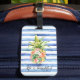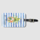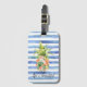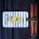 Étiquette À Bagage Blue White Stripes Tropical Floral Pineapple