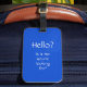 Cette étiquette de bagage vous aidera si tout va bien rapidement à identifier votre sac. Elle est bleue lumineux et lit, "bonjour ? Est elle je que vous recherchez ?" Haha. La conception est d'un côté ; l'inverse est une fente pour votre identification ou carte de visite personnelle.