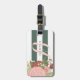 Étiquette À Bagage Bouquet rose et bandes vertes Nom personnalisé