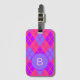 Étiquette À Bagage Bright Pink and Blue Argyle Pattern Monogram