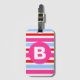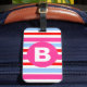 Étiquette À Bagage Bright Pink and Blue Candy Stripes Monogram