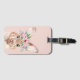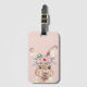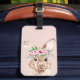Étiquette À Bagage Bunny D'Aquarelle Rose Pastel Moderne Avec Fleurs