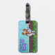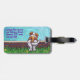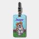 Étiquette de chien mignonne de St Bernard de défilé animal pour le bagage créé par Imagine cela ! Caractéristiques de conception notre caractère bronzage et blanc mignon de chien se tenant dans une cour herbeuse avec une barrière de brique rouge, un ciel bleu texturisé et une frontière pourpre onduleuse espiègle peints par notre artiste doué du livre d'enfants, Traci Van Wagoner. Le chiot d'amusement se tient en position de jeu avec une patte augmentée. Cet art d'animal familier d'amusement est parfait pour des amoureux de les chiens de St Bernard et des amants animaux humoristiques d'art de tous les âges. Sur plusieurs de nos produits lunatiques de chienchien de St Bernard vous trouverez ce chiot mignon venir et aller avec la tête de chien espiègle de St Bernard d'un côté et la crételle drôle de l'autre. Joignez le défilé animal et apportez un sourire au visage de quelqu'un que vous aimez avec un cadeau de notre chien mignon de St Bernard. Woof !