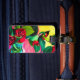 L'aquarelle originale de fleurs florales de Camellia Rouge avec feuillage vert contre un arrière - plan coloré rose et jaune. Par l'artiste Sacha Grossel, ce design de fleurs botaniques est époustouflant.