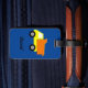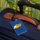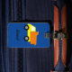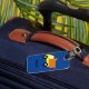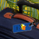 Camion de jouets en forme de dessin animé. Balises de bagages personnalisées. Arrière - plan bleu. Modifiez le nom pour personnaliser ces étiquettes de bagages. Idée cadeau pour les enfants.
