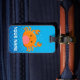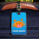 Un mignon crabe caricaturé orange sur un arrière - plan à dégradé bleu. Balises de bagages personnalisées pour valises. Modifiez le nom pour personnaliser cette balise. Idée cadeau pour les enfants.