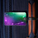 Bright purple and green background with shiny confeti. Mardi gras du festival.