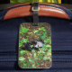 This Luggage Tag is a picture I took of a black and white kitty jumping around on a Honeysuckle Bush.