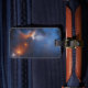 La région centrale du nuage moléculaire foncé Chamaeleon I, à 630 années-lumière. Capturé par la caméra à infrarouge proche (NIRCam) sur le télescope spatial James Webb. Le matériau nuageux froid et souple (bleu, centre) est éclairé dans l'infrarouge par la lueur du jeune prototype sortant Ced 110 IRS 4 (orange, en haut à gauche). La lumière provenant de nombreuses étoiles arrière - plans, considérées comme des points orange derrière le nuage, peut être utilisée pour détecter les glaces dans le nuage, qui absorbent la lumière d'étoile qui les traverse.