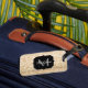 Personnalisez votre étiquette de sac à bagages de voyage avec votre nom et votre initiale. La belle parties scintillant dorée au champagne brille. Photo champagne or pétille pas parties scintillant !