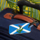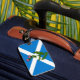 Symbole floral de l'Ecosse sur le motif patriotique de drapeau écossais