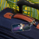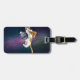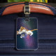 Étiquette À Bagage Chat avec une planète et manger une pizza