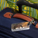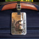 Faites ressortir vos bagages sur un carrousel d'aéroport avec des étiquettes uniques ! Cette étiquette à bagages comporte un cheval brun qui cherche les pommes tombées sous la neige blanche, sur fond de collines dorées, jaunes et oranges nues. Customisez l'envers avec vos renseignements personnels.
