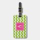 Étiquette À Bagage Chevron d'impression de monogramme rose et vert