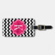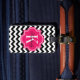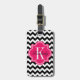 Étiquette À Bagage Chevron noir et blanc avec le monogramme de roses