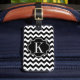 Étiquette À Bagage Chevron noir et blanc avec le monogramme noir