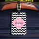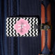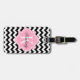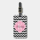 Étiquette À Bagage Chevron noir et blanc avec le monogramme rose