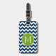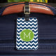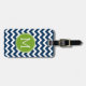 Étiquette À Bagage Chevrons bleu marine et vert citron Monogramme per