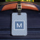 Étiquette À Bagage Chevrons bleus et monogramme de rive moderne