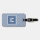 Étiquette bleue et blanche d'une rive moderne de chevron de motif de bagage. Rendez-le personnel en ajoutant votre initiale au carré décoré d'un monogramme.