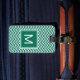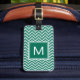 Une étiquette verte et blanche luxuriante moderne de bagage de motif de chevron. Rendez-le personnel en ajoutant votre initiale au carré décoré d'un monogramme.