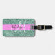 La parties scintillant rose et verte chic et glam scintille le nom de monogramme blanc et la marque de bagage initiale. Votre nom personnalisé et votre monogramme sont écrits dans un élégant script écrit à la main avec un arrière - plan rose. Vous pouvez modifier la couleur du texte, le style et la taille de police à l'aide de l'option personnaliser. Un cadeau d'anniversaire ou de Noël parfait !