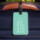 Voyagez dans la mode avec cette étiquette de valise verte à la menthe chic à deux tons avec un motif en pied de jambe en bandes verticales. Personnalisez ce design contemporain dans une teinte tendance de vert pastel en ajoutant le nom, les initiales monogrammes et les coordonnées de la jeune femme à la mode.
