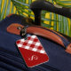 Étiquette À Bagage Chic Monogramme Rouge Blanc Buffalo Check Géométri