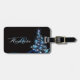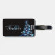 Christmas Party Blue Tree Shiny Black Elegant Luggage Tag. Unique, beautiful, stylish design. Easy to be personalized. Font style, size and colors can be changed. Matching items are available.
