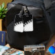 Un clavier de piano noir et blanc courbe divise le noir du blanc dans ce design graphique fantaisiste qui ravira le musicien.