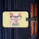 Balise bagage mignonne avec cochon rose hipster avec des lunettes surdimensionnées et une cravate arc fantaisie