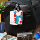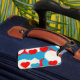 Graphiques cardiaques de style rétro en rouge, blanc et bleu sur les étiquettes de bagages.