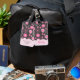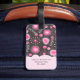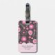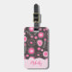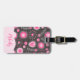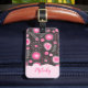 Étiquette À Bagage Coeurs gris rose blanc et nom fleuri