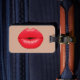 Une image pop Art de cramoisis rouge vif lèvres s'agitant pour un baiser contre un arrière - plan de couleur café. Ce design s'inspire de l'art pop, de l'art moderne, de l'art graphique, de la culture hipster et est sûr d'être une pièce de déclaration.